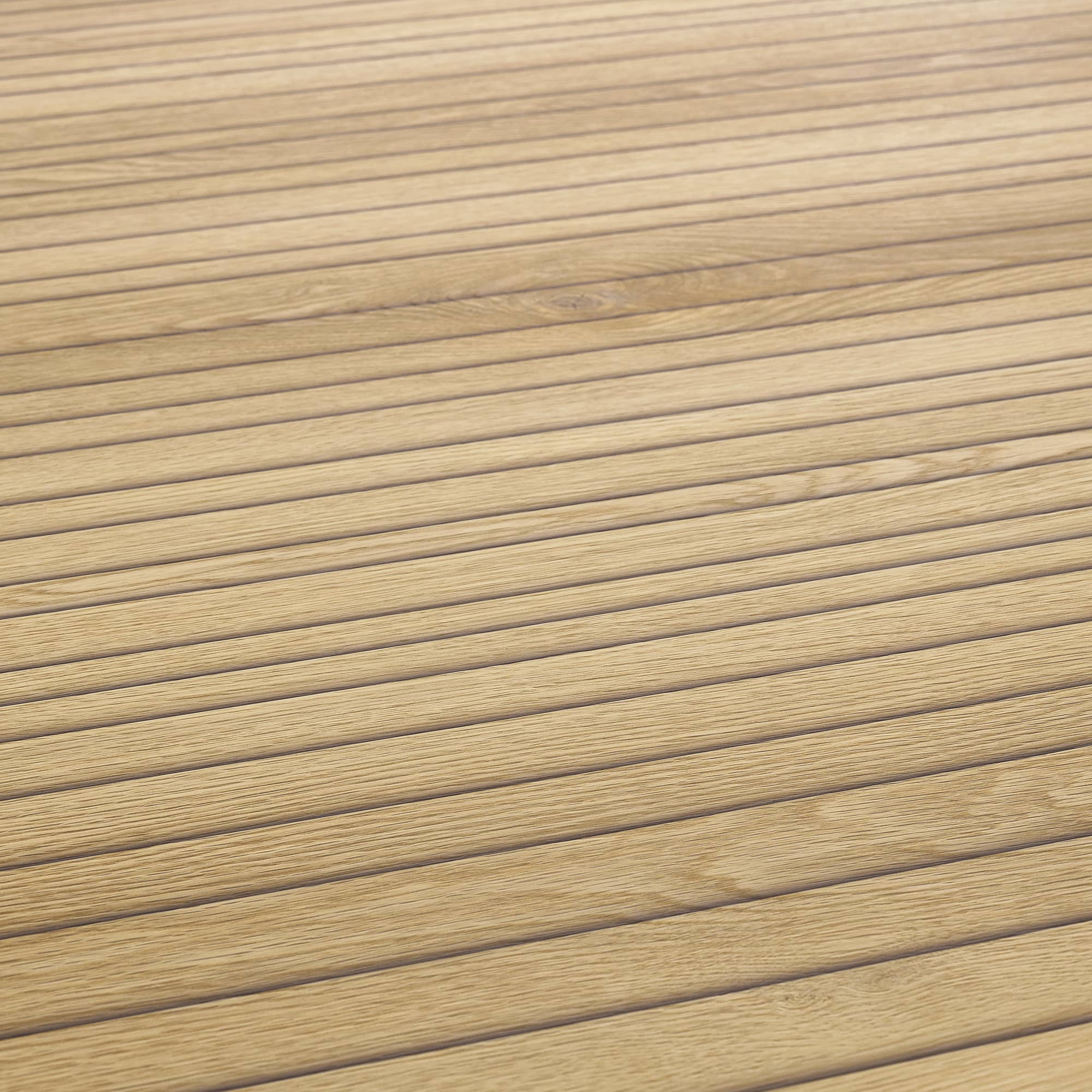 SPC, vinil zidne obloge, čiji dekori Fluted Oak izgledaju kao autentični kanelirani paneli, koji ističu prirodnu eleganciju drva kroz čiste, vertikalne linije. Suvremen dizajn stvara dinamičan ritam vertikalnih linija, unoseći pokret, dubinu i karakter. Fluted Oak savršena je kombinacija prirodne topline, suvremenog dizajna i arhitektonske preciznosti. Idealan izbor za suvremene interijere koji zahtijevaju više od obične obloge. Kombinirajte ga s dekorima True Oak za stvaranje besprijekornih interijera.